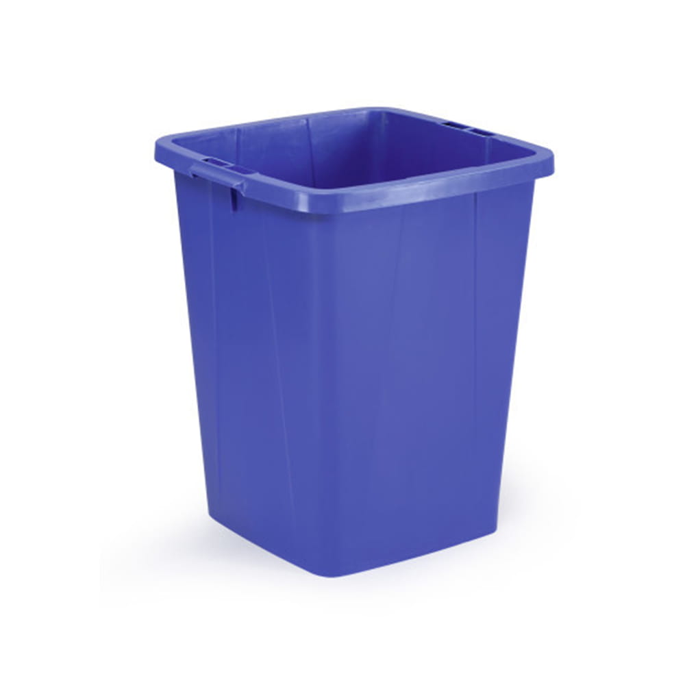 Prostokątny pojemnik o pojemności 90 litrów. Idealny do odpadów i recyklingu. Z mocnymi rączkami ułatwiającymi jego przenoszenie oraz uchwytem na dnie do wygodnego opróżnianie kosza. Szczeliny do zaczepienia worków na śmieci. Przechowywanie żywności możliwe we wszystkich kolorach (zgodnie z rozporządzeniem UE 1935/2004/WE), z wyjątkiem koloru czarnego, ponieważ zawiera granulat z recyklingu.