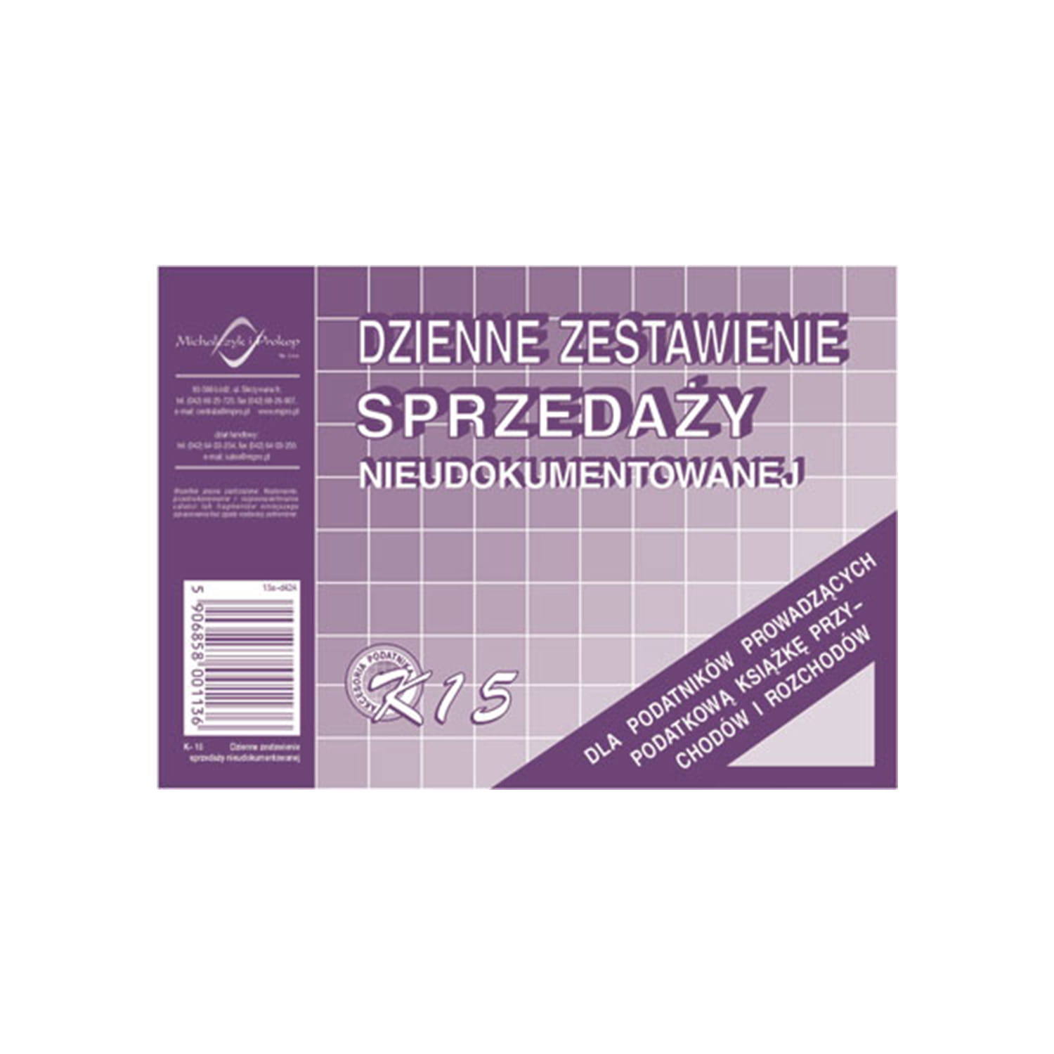 K15 DZIENNE ZESTAWIENIE SPRZEDAŻY NIEUDOKUMENTOWANEJ (DLA PODATNIKÓW PROWADZĄCYCH PODATKOWĄ KSIĘGĘ PRZYCHODÓW I ROZCHODÓW)