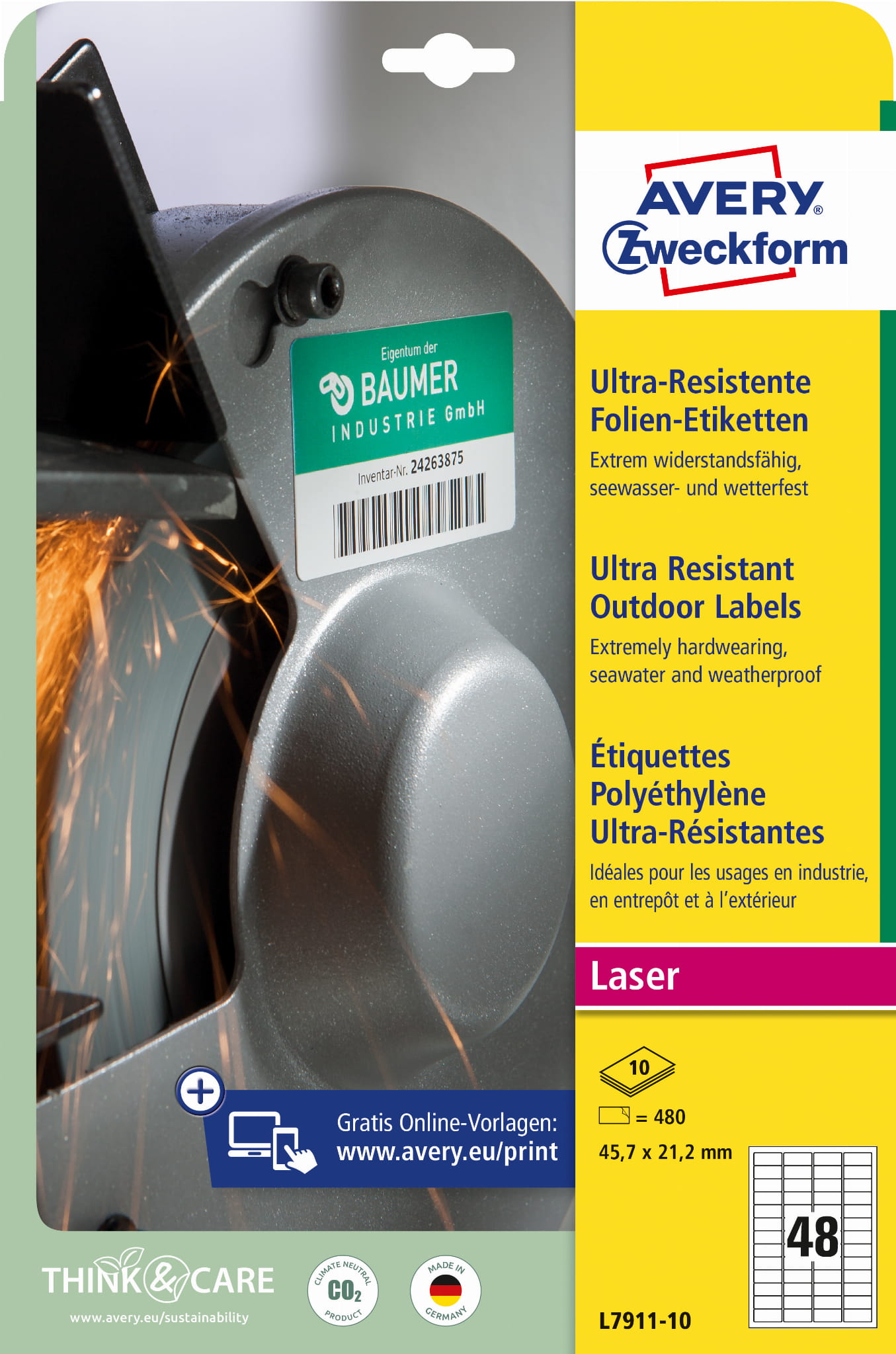 Etykiety polietylenowe Ultra Resistant są przeznaczone do drukarki laserowej, a ich użycie jest proste i wygodne, dzięki darmowym szablonom i oprogramowaniu dostępnym na stronie www.avery-zweckform.pl. Na tej stronie można znaleźć również różne wzory i szablony do etykietowania.