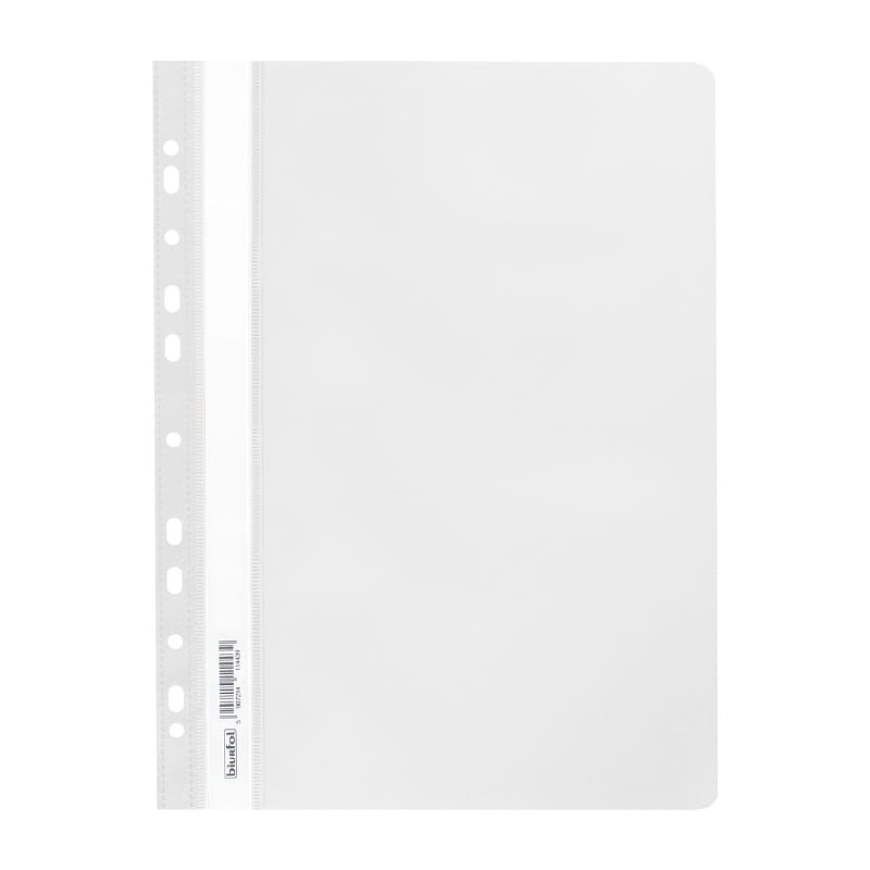Wykonany z wysokiej jakości, miękkiego polipropylenu, produkt łączy lekkość z trwałością. Przezroczysty przód pozwala szybko zidentyfikować zawartość bez konieczności otwierania, natomiast biały tył dodaje elegancji i ułatwia segregację materiałów. Dzięki europerforacji skoroszyt można łatwo wpiąć do każdego segregatora — bez względu na typ ringów.