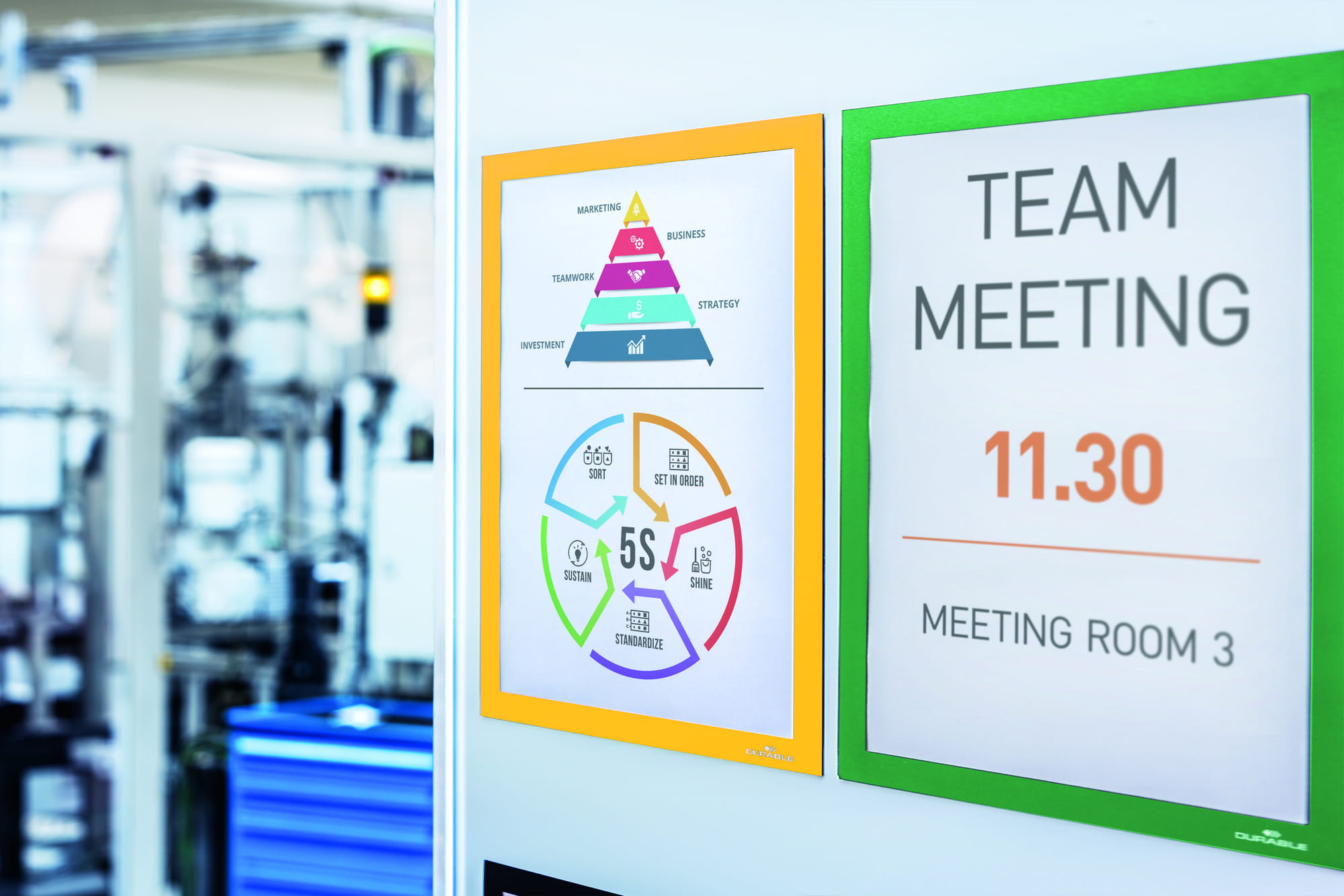 • Łatwy montaż na metalowych powierzchniach, np. tablicach ogłoszeniowych i informacyjnych, szafkach czy mobilnych powierzchniach informacyjnych albo maszynach w obszarze produkcji