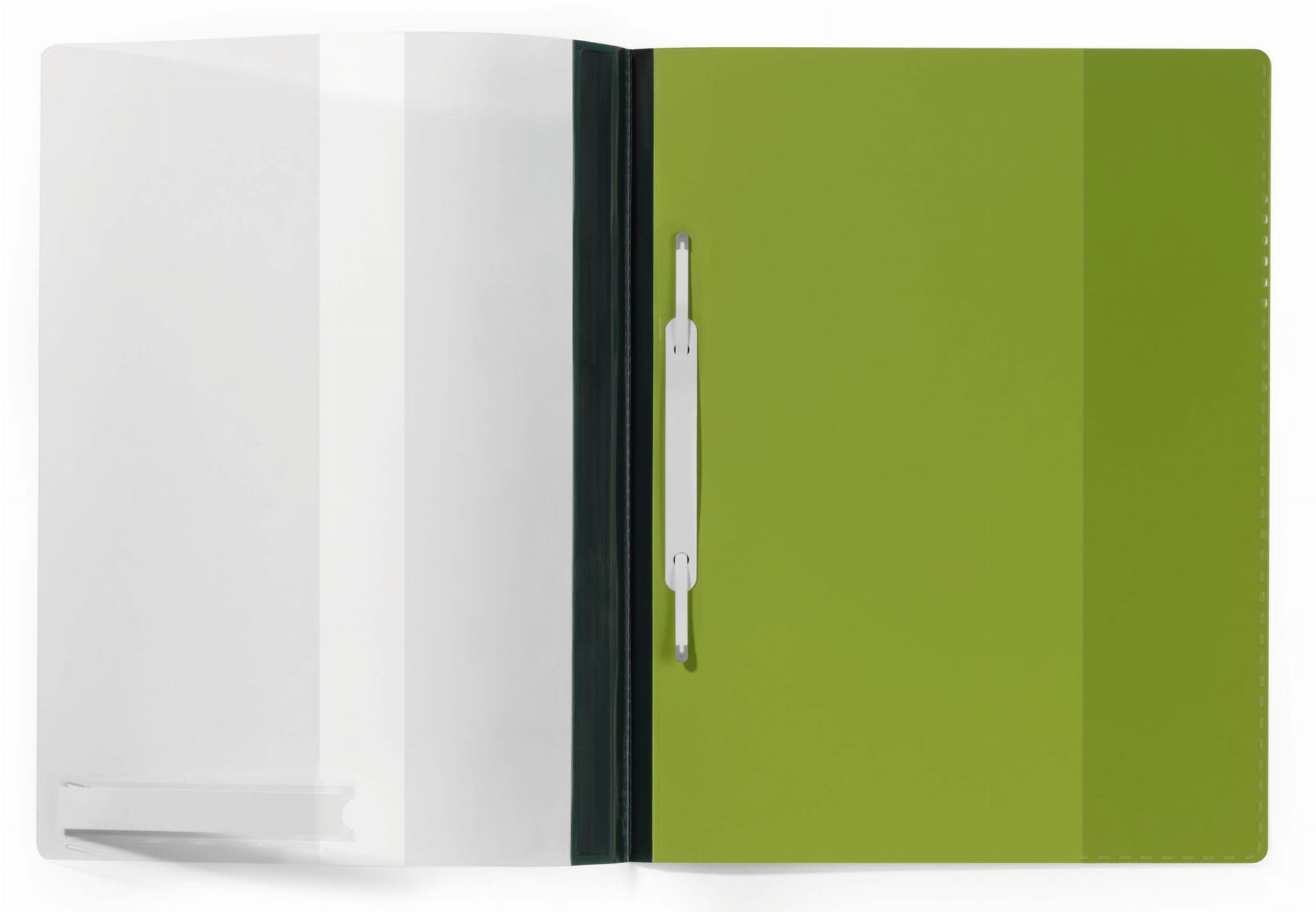 Skoroszyt o specjalnej szerokości do koszulek na dokumenty. Wysoka jakość w codziennym użyciu. • Skoroszyt z przezroczystą przednią okładką i kolorową tylną • Dzięki formatowi A4 o nietypowo dużej szerokości odpowiedni do wpinania koszulek na prospekty • Opis w podłużnej wąskiej kieszonce na przedniej okładce • Przechowywanie niedziurkowanych dokumentów możliwe w wewnętrznej kieszeni na tylnej okładce • Możliwość zawieszenia w wózku na teczki zawieszane za pomocą dokupionej listwy nr art. 1531 • Dla stron formatu A4+