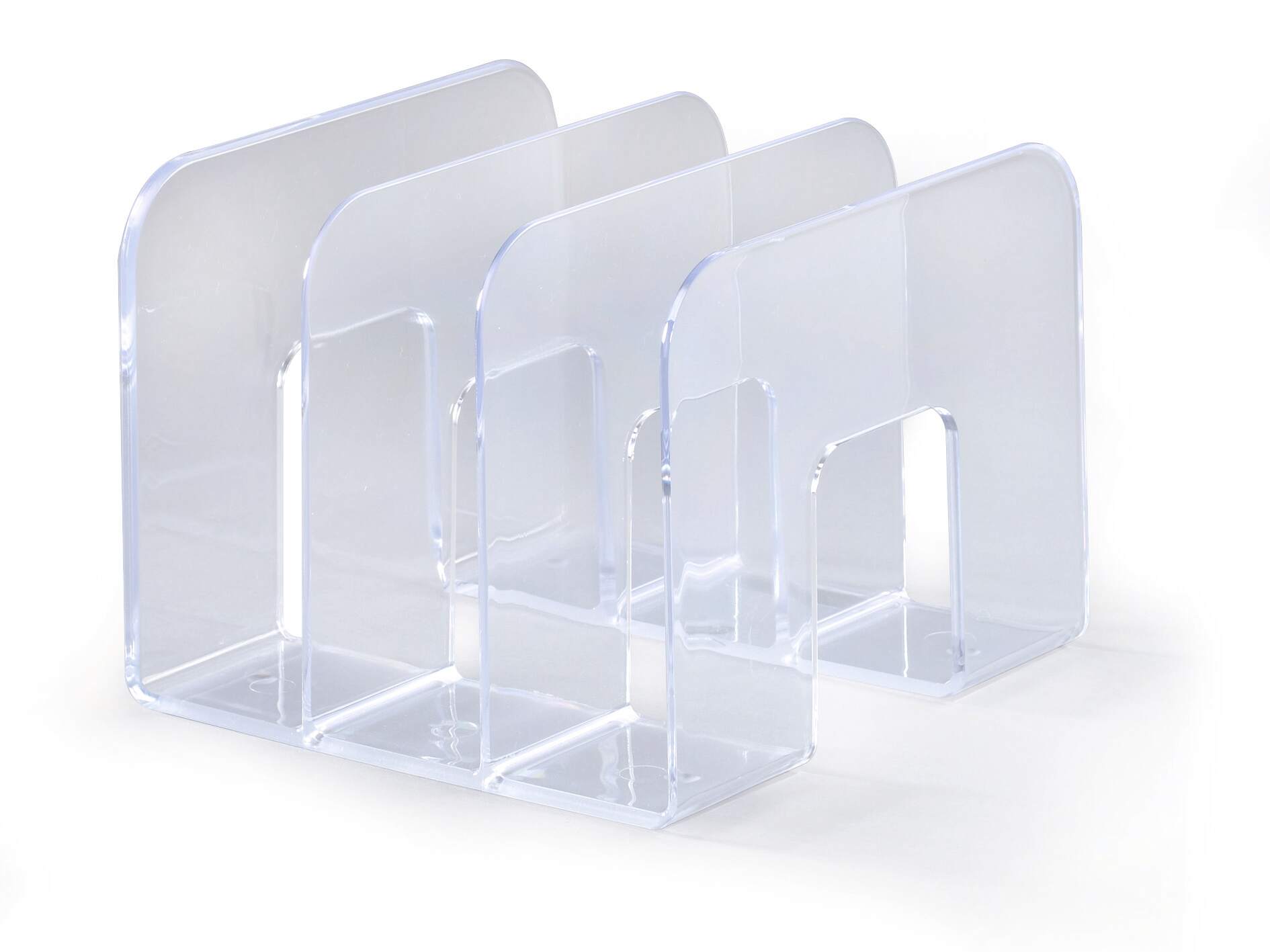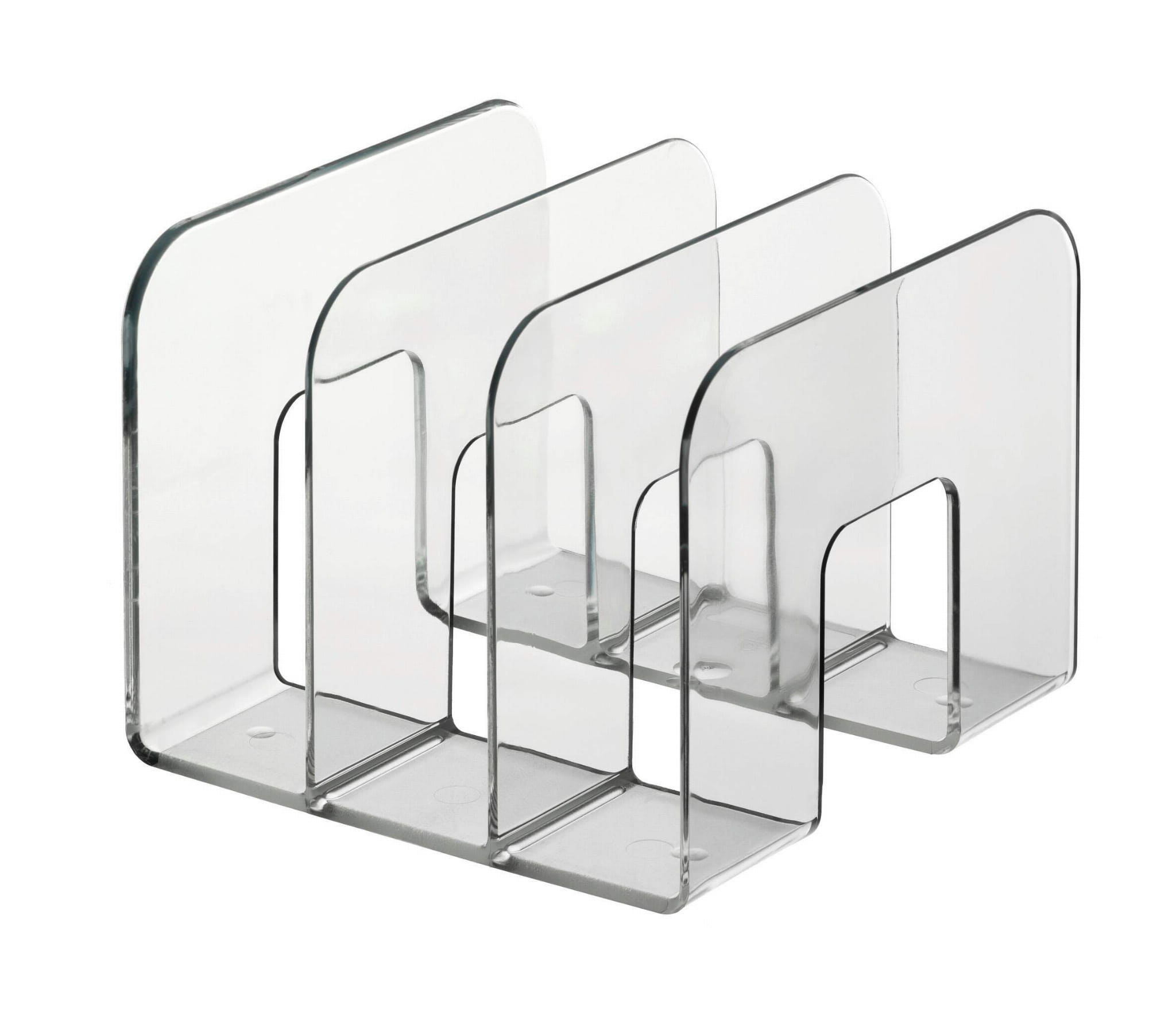 Stojak na katalogi z trzema przedziałami o szerokości 65 mm do większej ilości czasopism lub dokumentów. Wymiary: 215x165x210 mm (SxWxG). • Stojak na katalogi, czasopisma i broszury • Trzy przedziałki o szerokości 65 mm