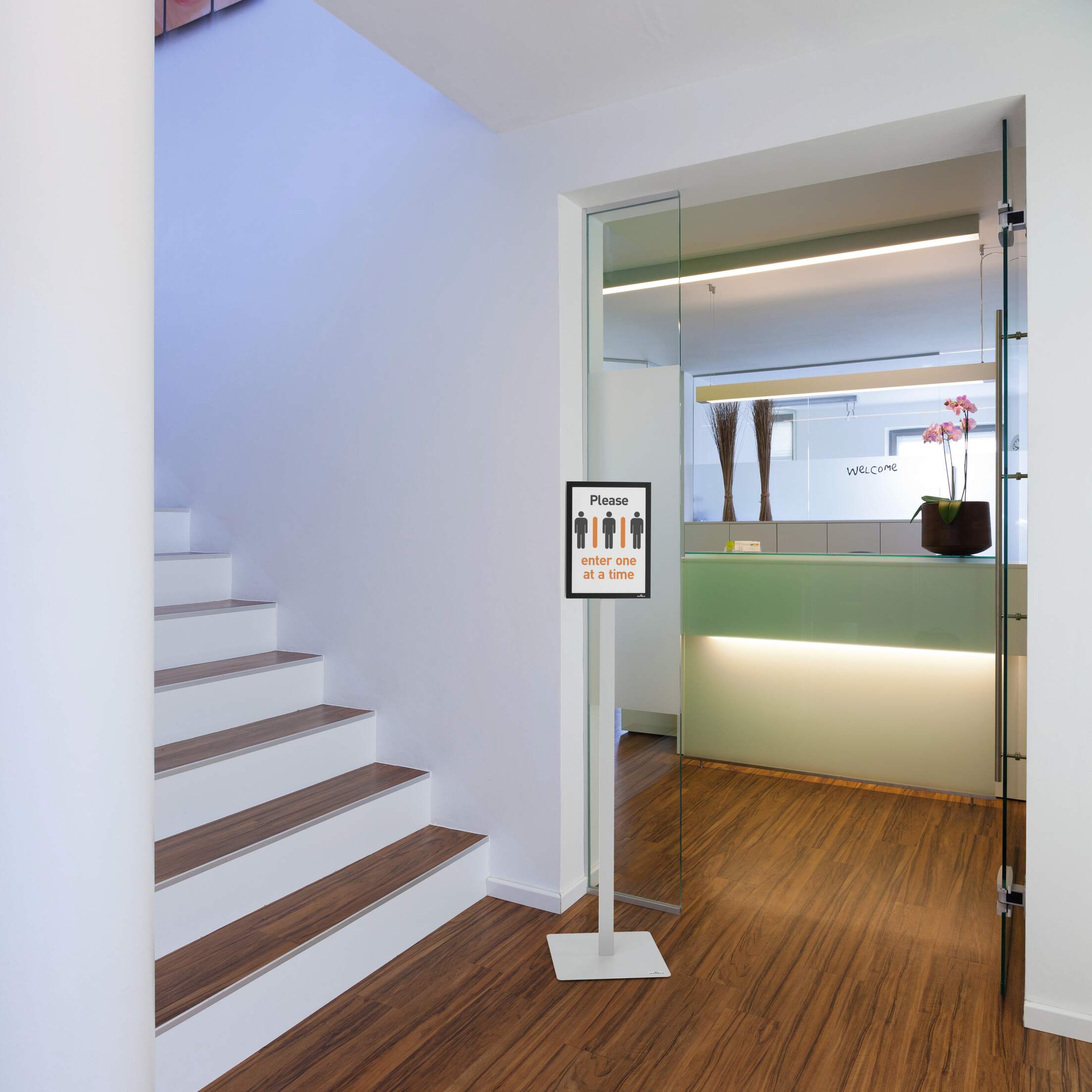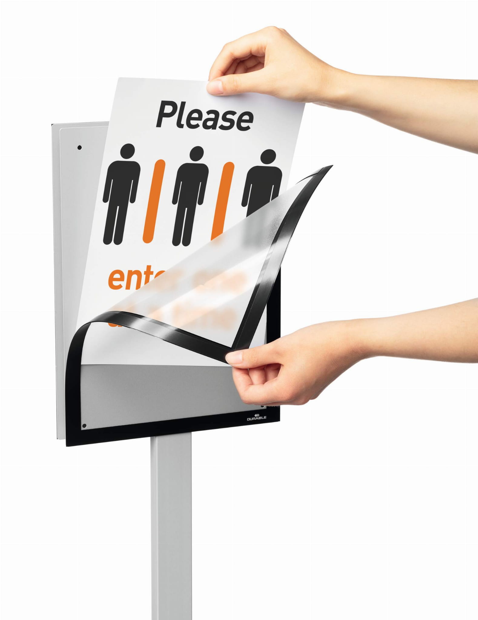 • Dwustronny stojak podłogowy INFO STAND BASIC nadaje się zarówno do prezentacji informacji, jak również jako system oszyldowania wskazujący drogę, np. w centrach handlowych • Bardzo prosta wymiana informacji dzięki ramce informacyjnej DURAFRAME® MAGNETIC umieszczonej na płytkach z metalu • Duża stabilność dzięki stojakowi wysokiej jakości i dodatkowo dociążonej podstawie na czterech nóżkach z gumy • Innowacyjny mechanizm wtykowy umożliwia łatwą zmianę formatu z pionowego na poziomy • Idealny jako stojak informacyjny do holu, na targach, w kącikach komunikacyjnych i w poczekalniach • Ramkę DURAFRAME® MAGNETIC można dokupić w rożnych kolorach • Wiele blankietów do opisu dostępnych na stronie www.duraprint.pl • W tym zestaw do montażu i instrukcja