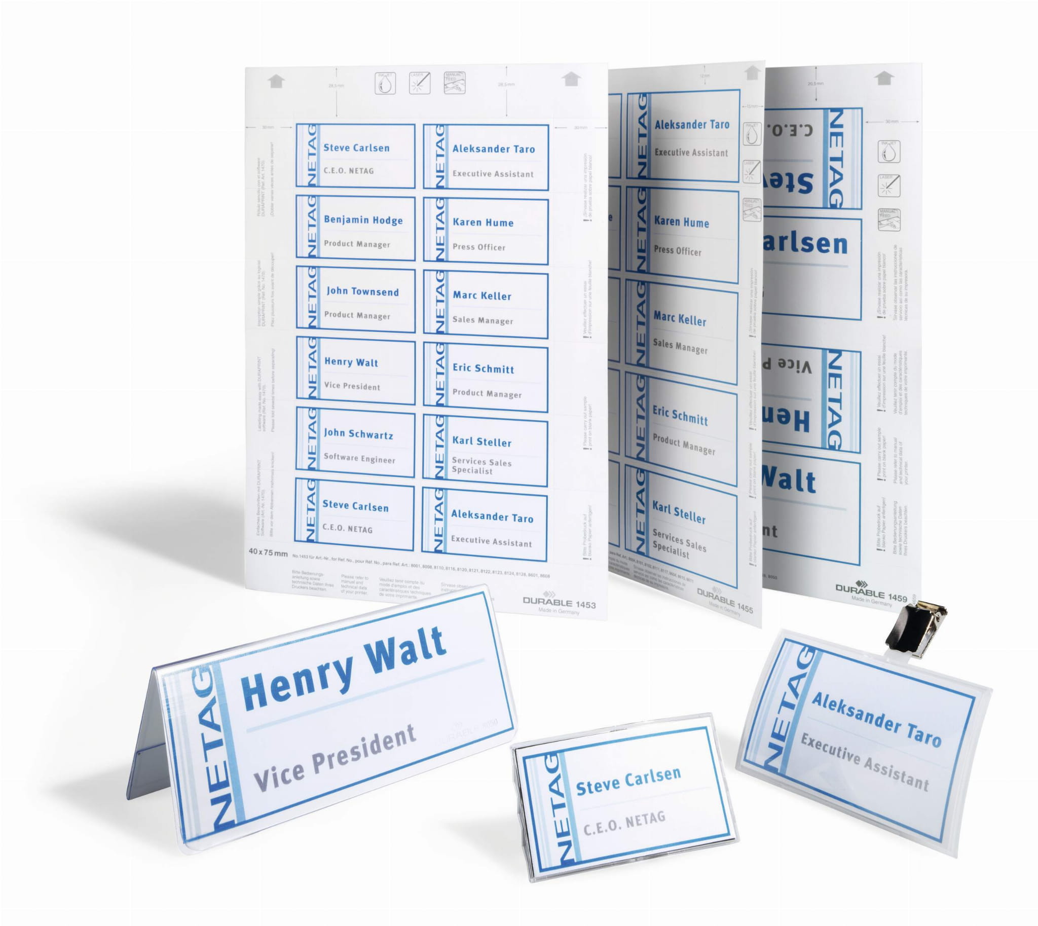 laserowej, atramentowej, igłowej lub xerokopiarce. • Arkusze z wkładami do identyfikatorów w formacie A4; ultradrobna perforacja, z certyfikatem PEFC • Zawiera 40 wkładów do identyfikatorów w formacie 61 x 150 mm • Do profesjonalnego opisu identyfikatorów • Wkłady BADGEMAKER® do identyfikatorów stojących mogą być również używane pojedynczo jako winietki • Dla artykułów DURABLE nr 8033, 8050, 8054, 8201, 8270