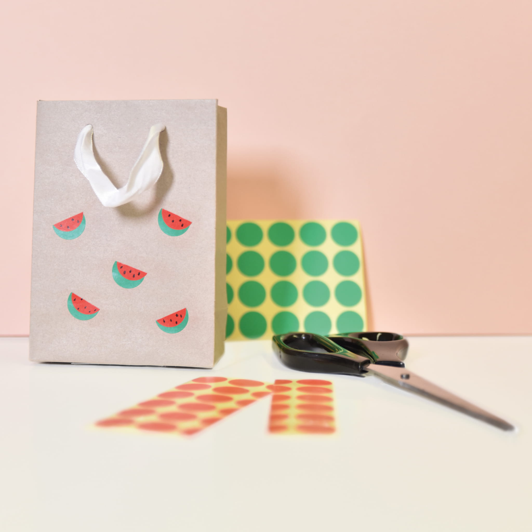 - Kolorowe, okrągłe etykiety w małych rozmiarach