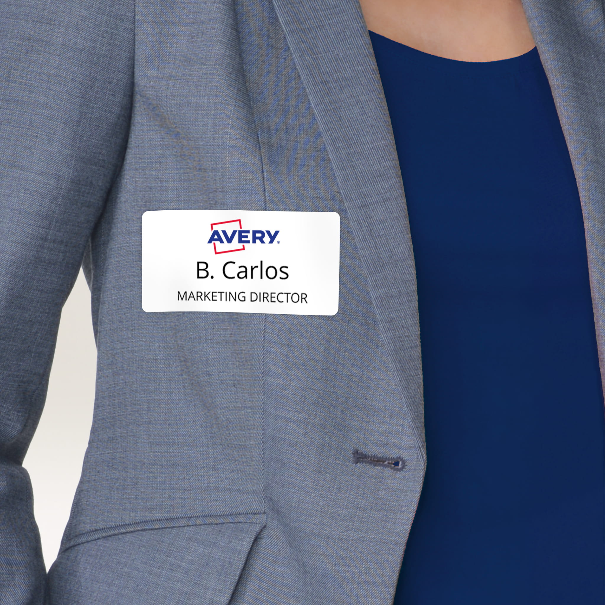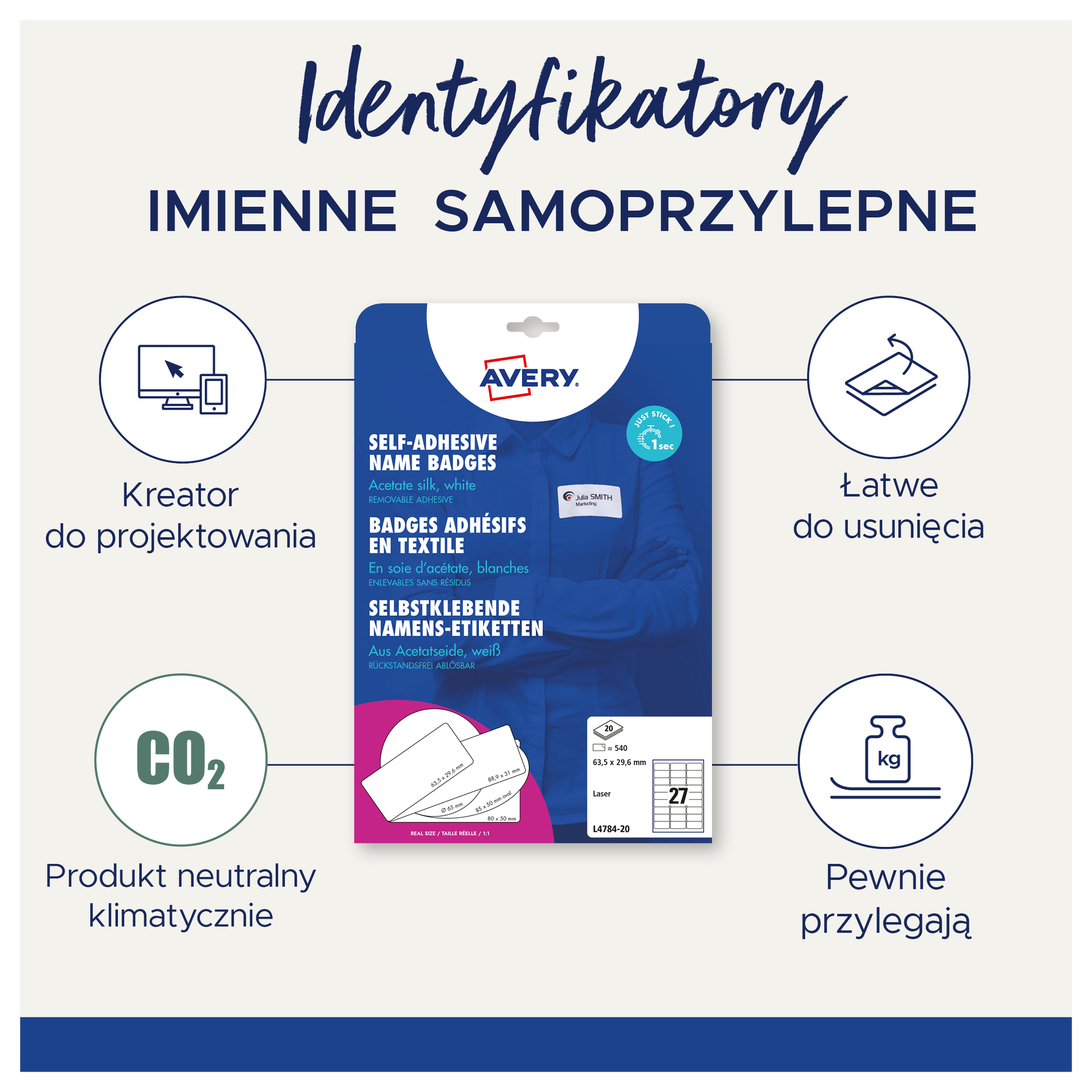 Samoprzylepne identyfikatory do zadruku, A4, 20 ark./op., 88,9 x 31 mm, białe, sztuczny jedwab, Avery L4783-20
