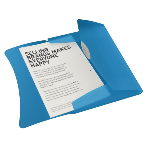 - Teczka ma klapki od góry i po bokach zabezpieczające dokumenty przed wypadnięciem i uszkodzeniem