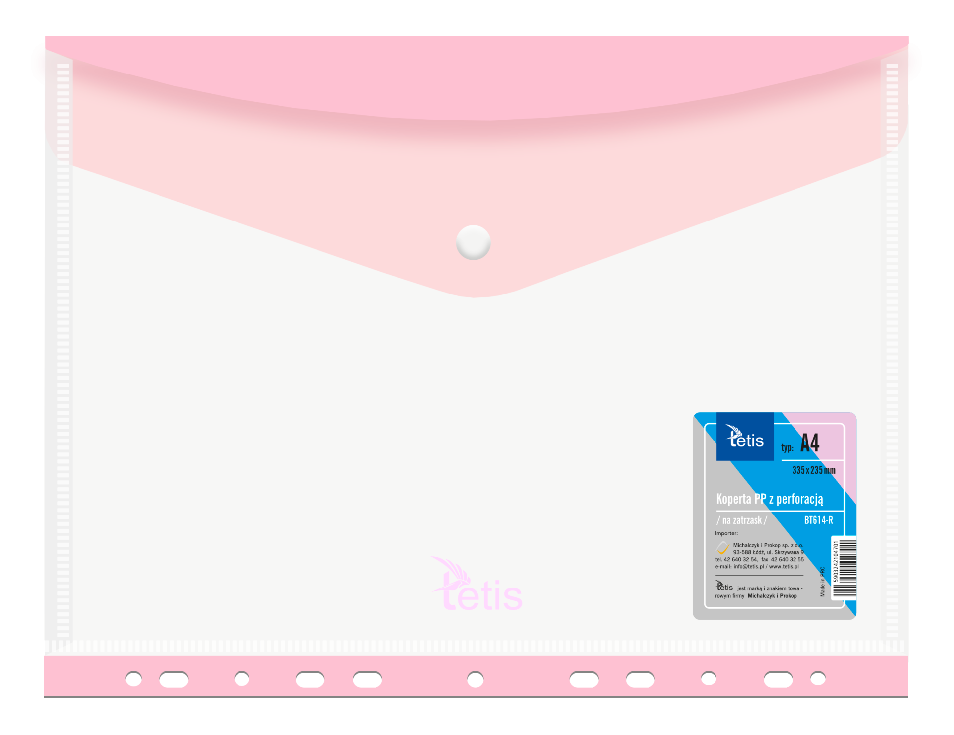 Tetis Teczka kopertowa A4 PP na zatrzask z perforacją RÓŻOWA