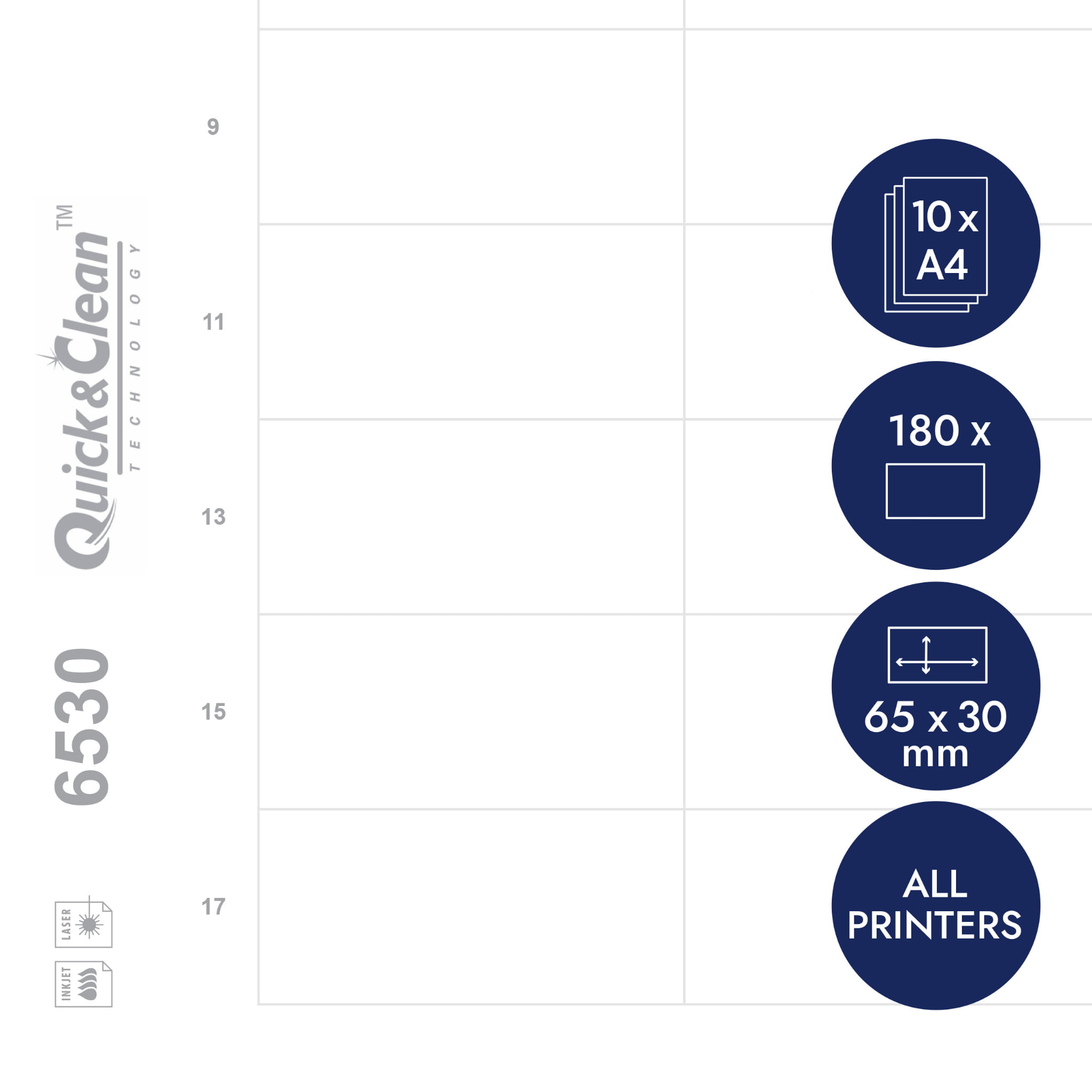 Wkłady do identyfikatorów, 65 x 30 mm, 10 ark/180 wkładów, białe identyfikatory, Avery DPC6530A-10