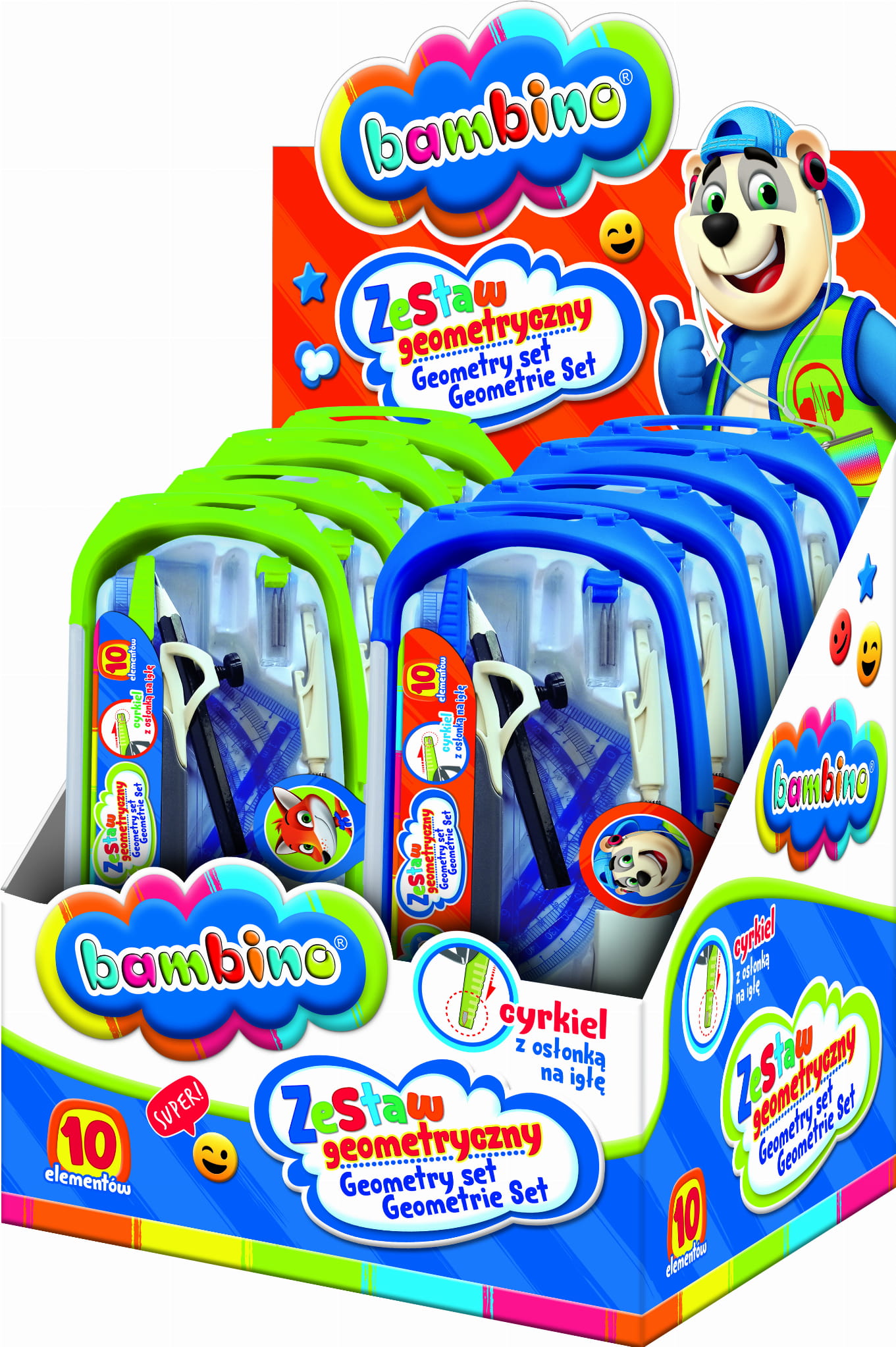Zestaw geometryczny BAMBINO 10 elementów z cyrklem STANDARD