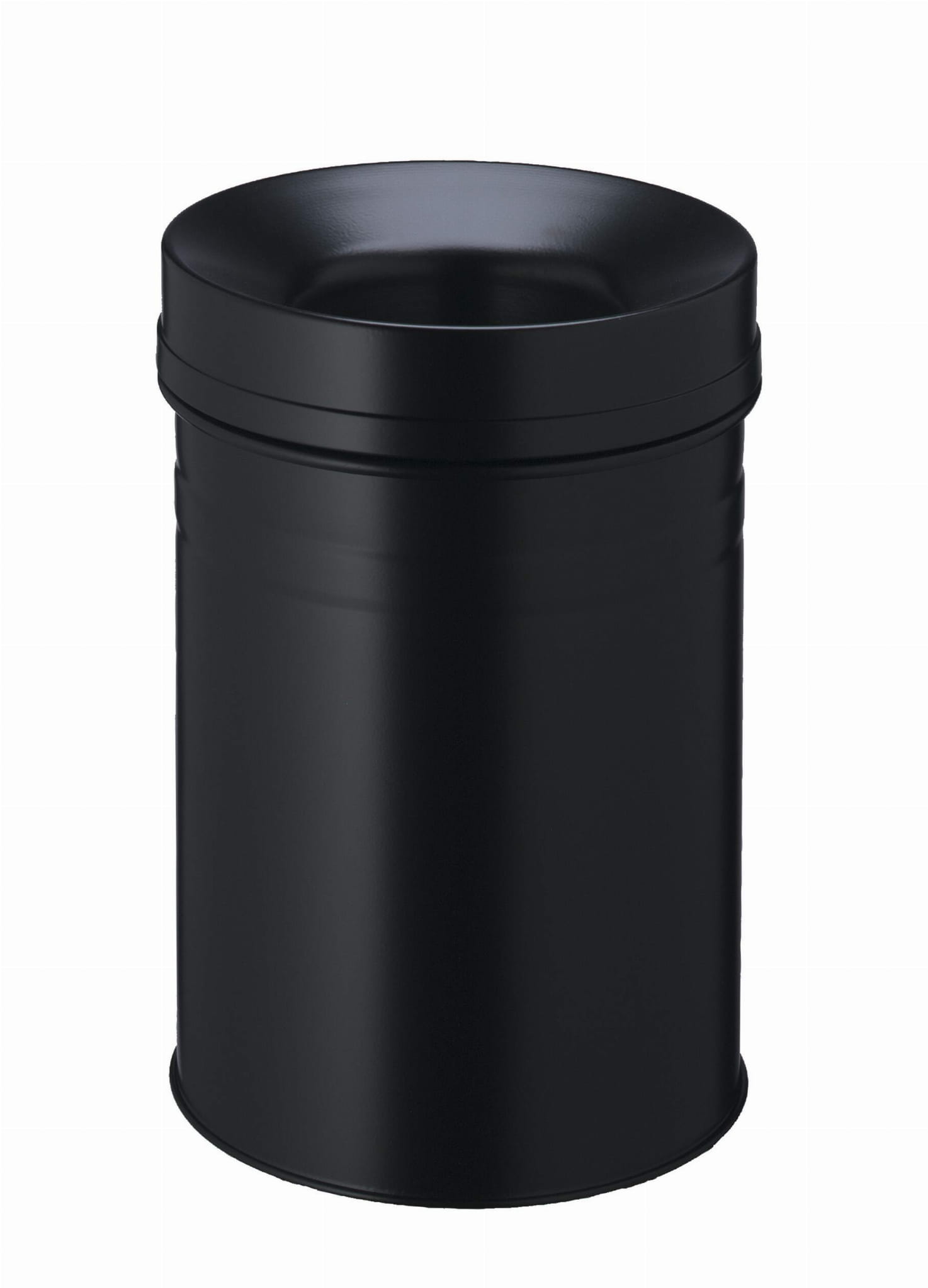 Wymiary: (W x Ø): 375 x 260 mm. • Okrągły kosz na papier z głowicą gaśniczą (ochrona przeciwpożarowa) • Samogasząca pokrywa głowicy gaśniczej odcina dostęp tlenu i tym samym gasi ogień • Z certyfikatem TÜV • Z głowicą gaśniczą z aluminium • Ze stali i odporną na zadrapania powłoką z żywicy epoksydowej • Pojemność 15 litrów