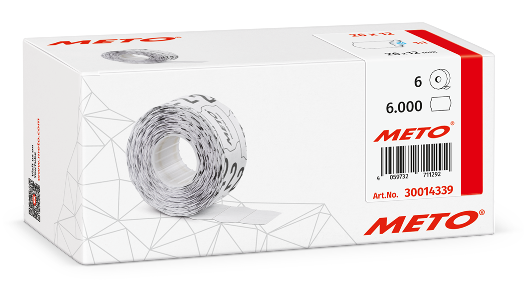 Etykiety cenowe w rolce do metkownicy jednorzędowej, 26 x 12 mm, białe cenówki, metki METO M30014339