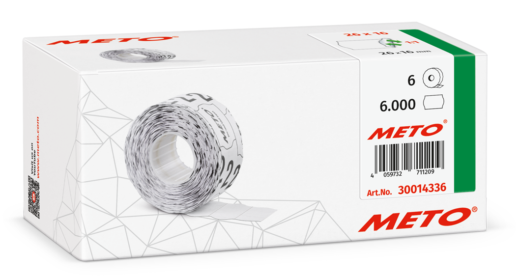 Etykiety cenowe w rolce dwurzęd. 26x16mm, białe METO 6szt.