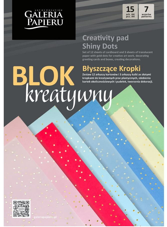 Galeria Papieru Blok A4 mix kartonów i kalki BŁYSZCZĄCE KROPKI 15 ark./op.