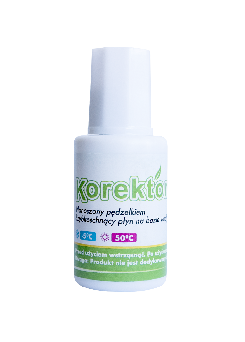 Korektor w buteleczce z pędzelkiem. Odpowiedni do korygowania na wszystkich powierzchniach papierowych. Zawiera szybkoschnący płyn korekcyjny na bazie wody. Pojemność: 20g.