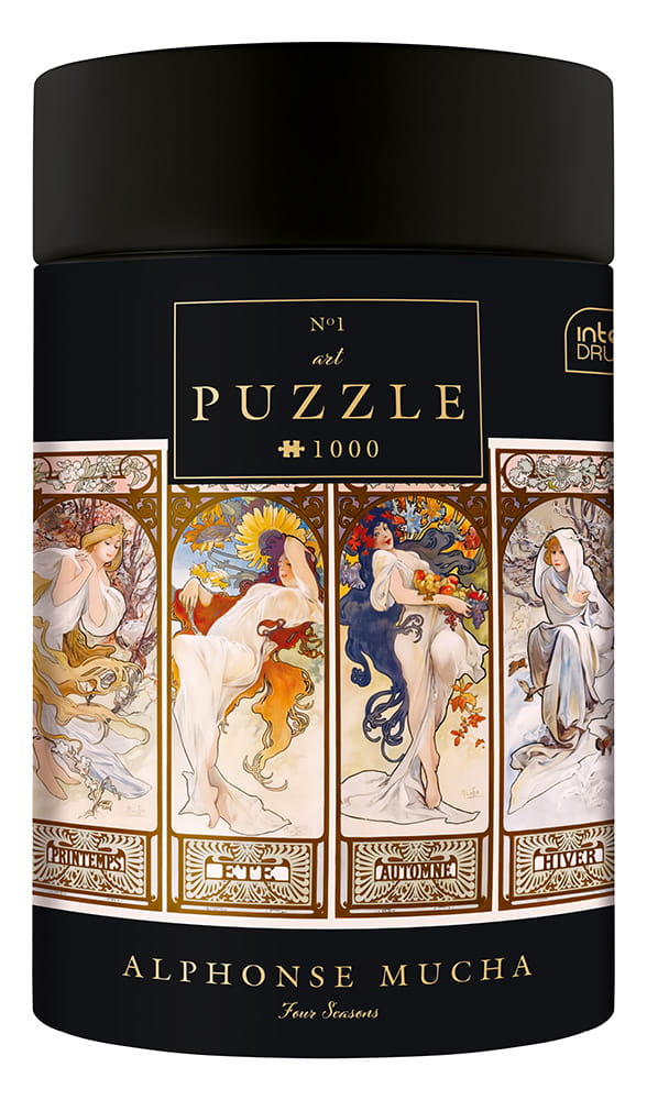 Puzzle kolekcyjne Art 1000 elementów. Tytuł w serii nr 1: Cztery pory roku Alfonsa Muchy. Rozmiar planszy po ułożeniu: 67x48 cm. Wyprodukowane z trzywarstwowego, solidnego kartonu Blue Board. Elegancka powłoka o fakturze lnu. W środku pomocniczy obrazek ułatwiający układanie puzzli. Solidne i trwałe pudełko do przechowywania. Piękne i wyjątkowe motywy, po ułożeniu idealne do oprawienia w ramkę i powieszenia na ścianie jako dekoracja. Przyjazne dla środowiska, w 100 % podlegają recyklingowi.