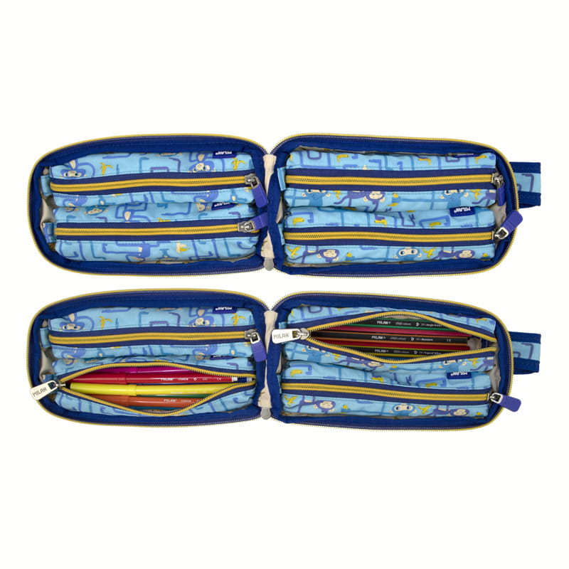 Milan Multipiórnik owalny z 4 piórnikami TANGLED MONKEYS niebieski