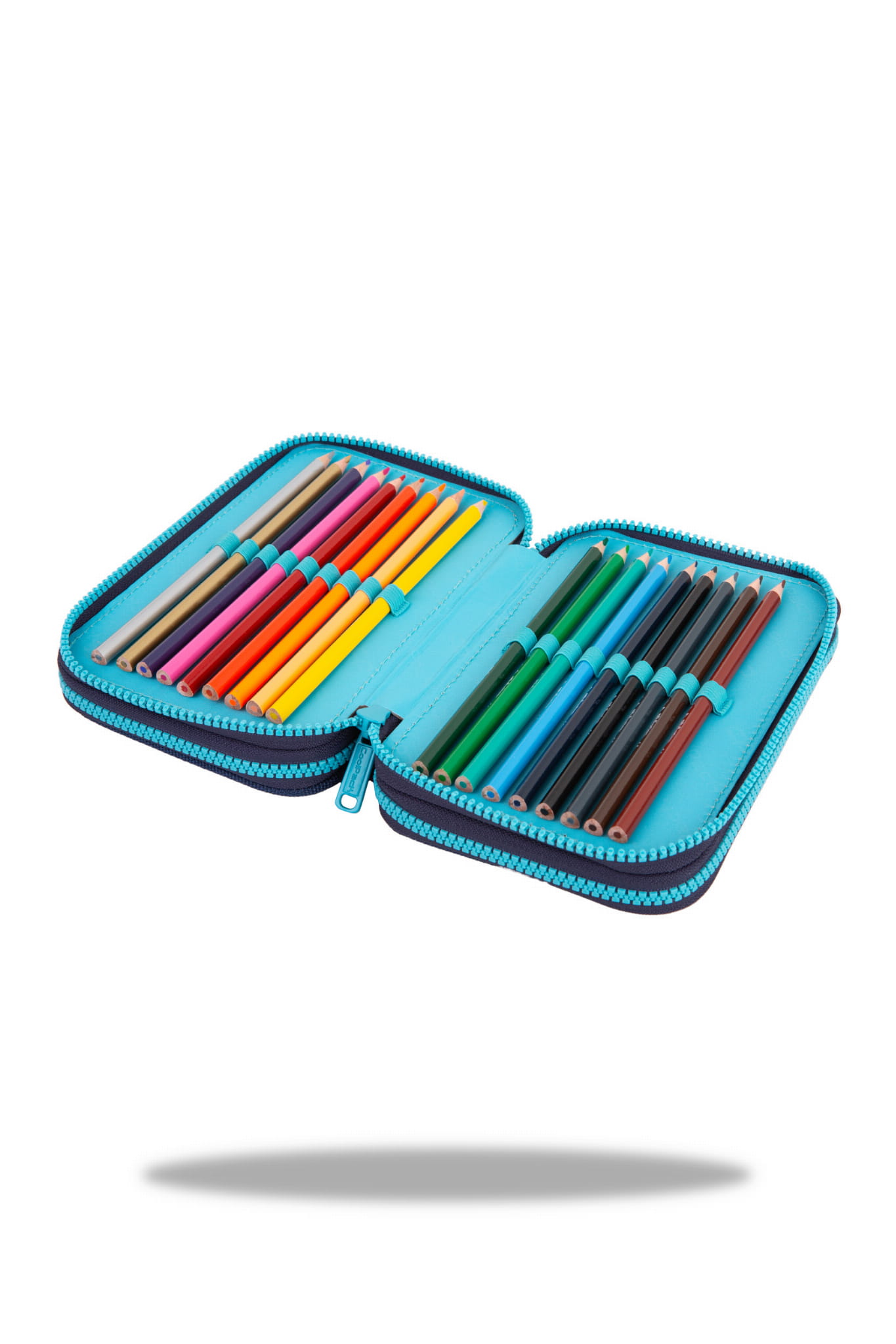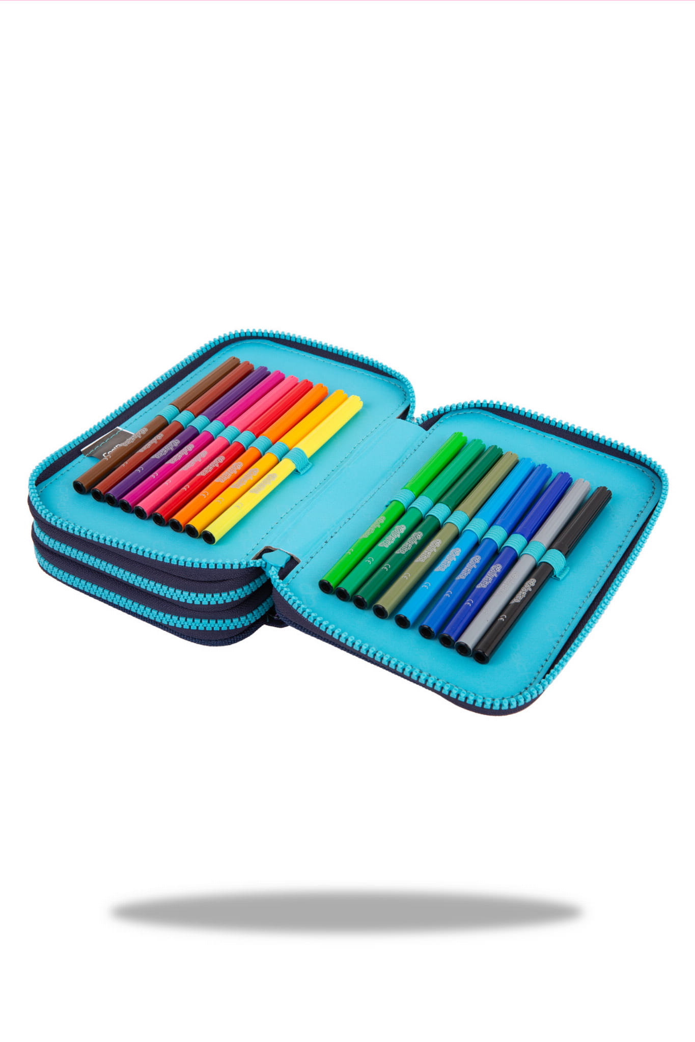 W wyposażeniu znajdują się m. in. kredki, flamastry, długopis, temperówka i ołówek, a także wiele innych niezbędnych akcesoriów.
