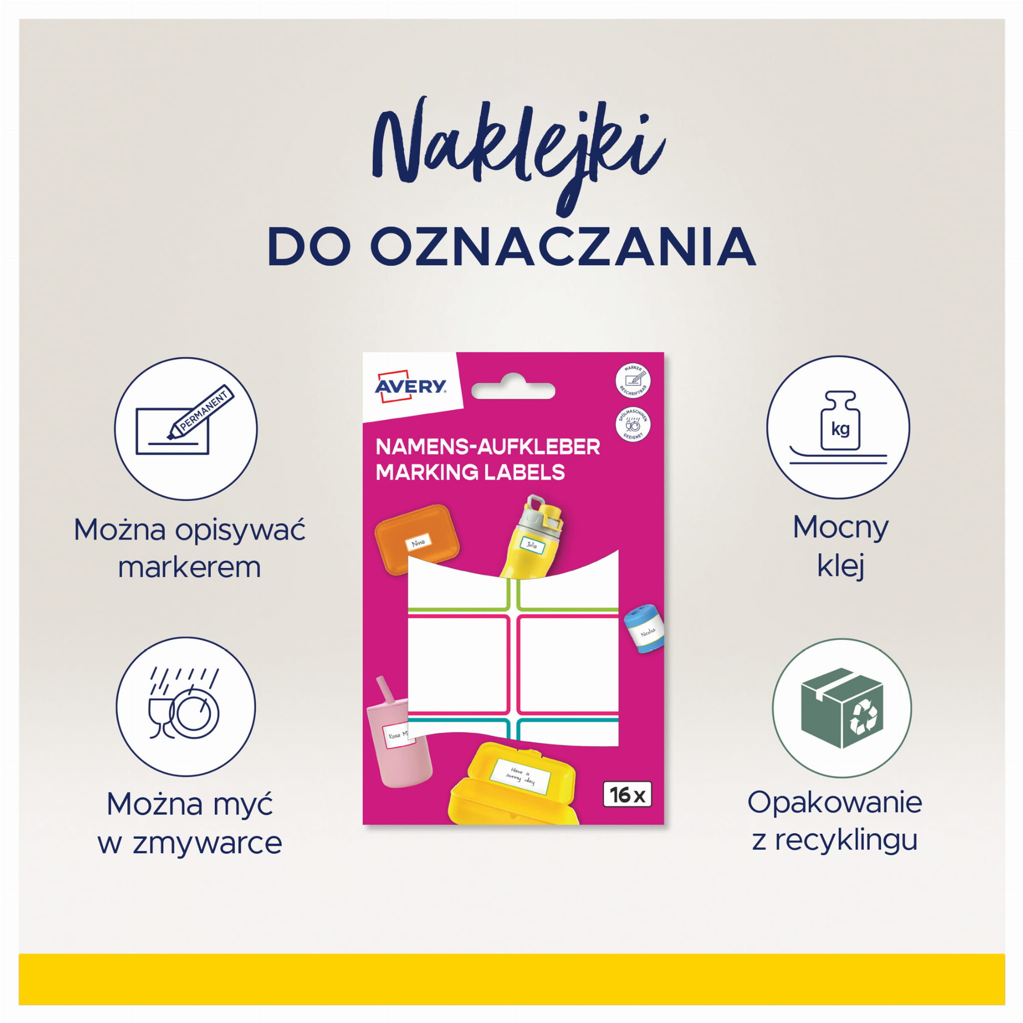 Naklejki do oznaczania; 48 x 34 mm, 16 naklejek, kolorowe ramki, AVERY