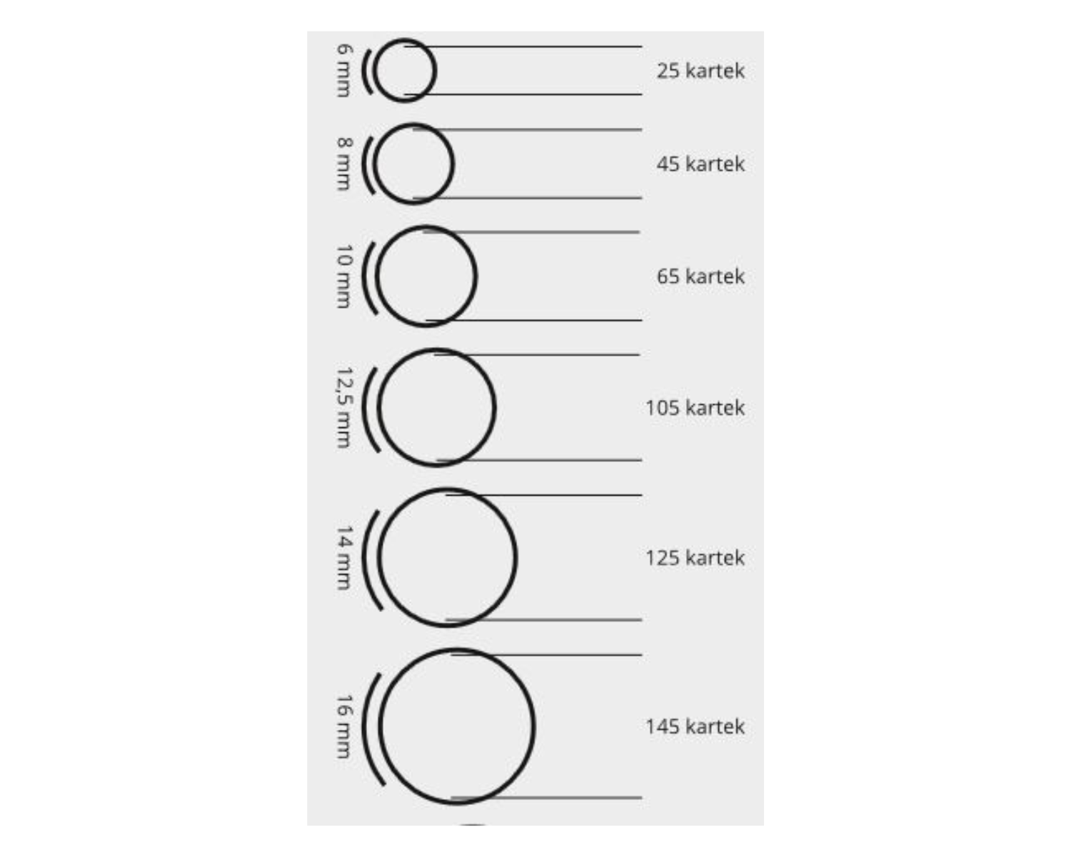 - zróżnicowane średnice grzbietów pozwalają na ich właściwe dobranie do ilości kartek.